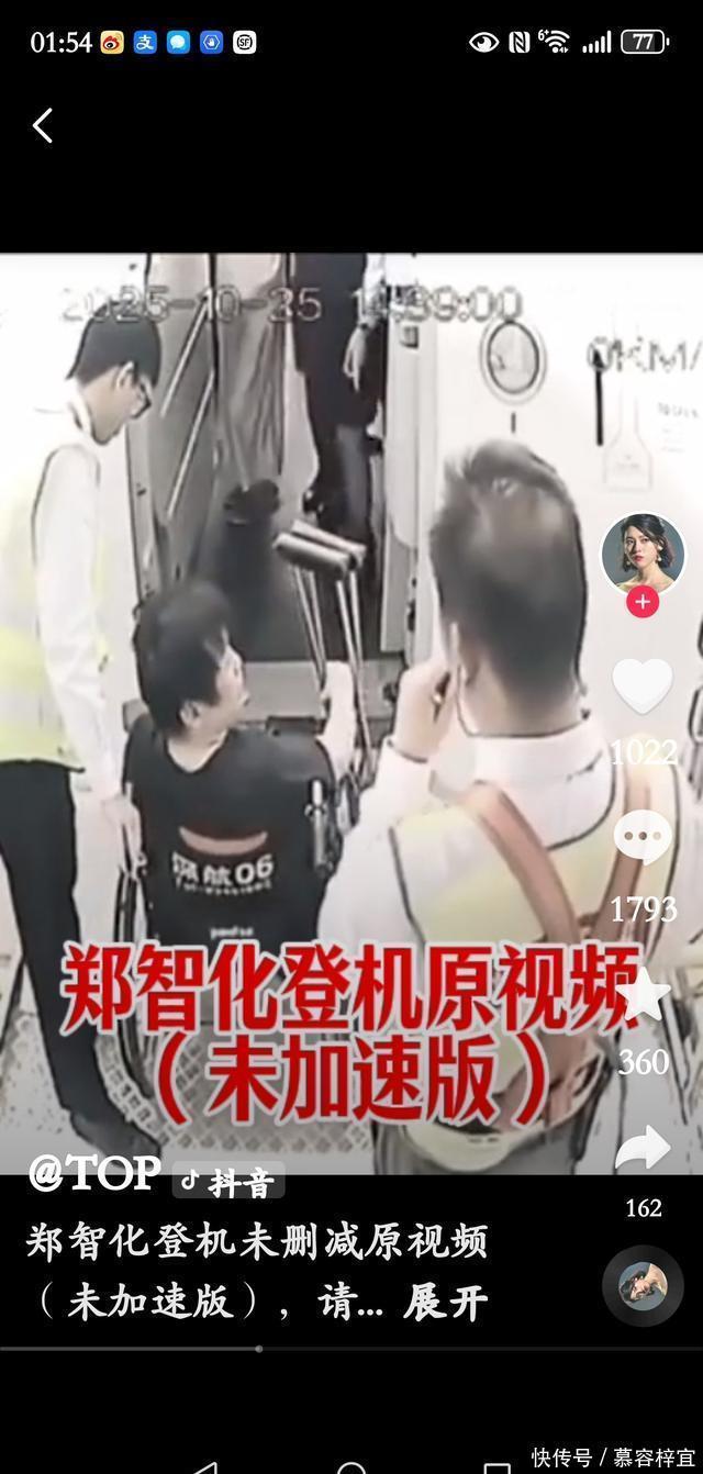 即使是如此努力了,郑智化还是上不去机舱。 开始他抬了一下左脚,看得出他的左脚很无力,只抬起了一点就又落下去了。 这时左面的那个推轮椅的小哥看到了他的无能为力,帮忙抬起了他的左脚。 所有人都应该能看到那是一个细细的假肢,我不知道为什么还会有人说他是装的: