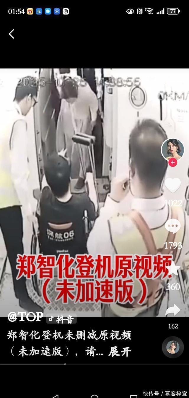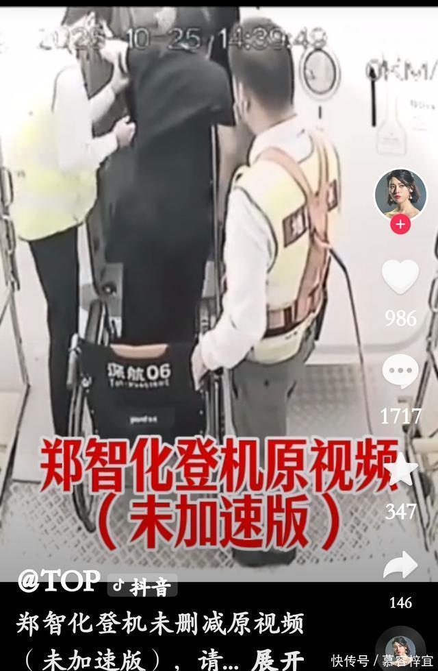 请想象一下自己此刻的心情。 然后,郑智化到达这里,从14点38分到14点39分20,机舱门口的郑智化夫人和空姐以及郑智化身后的工作人员都发现遇到了难题,经过一分钟的商讨,他们才开始准备行动。